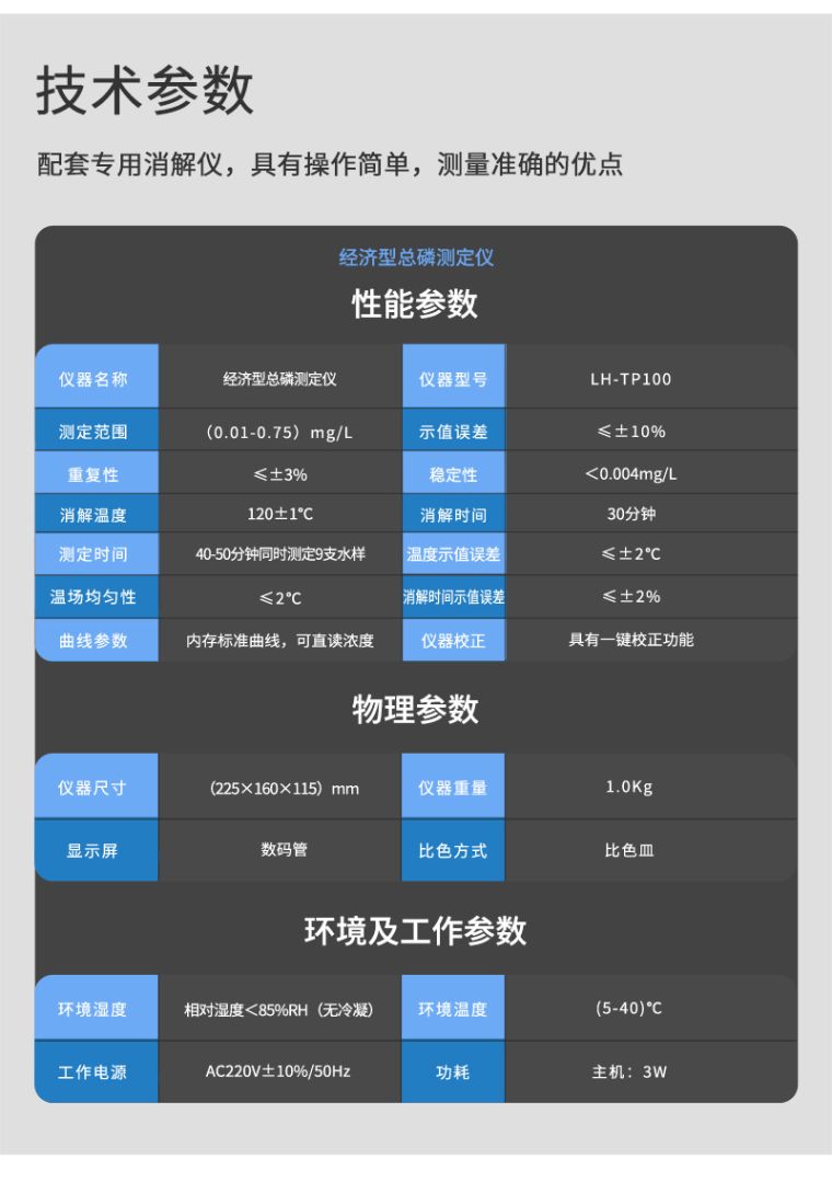 2、总磷误差:±10%功能特点