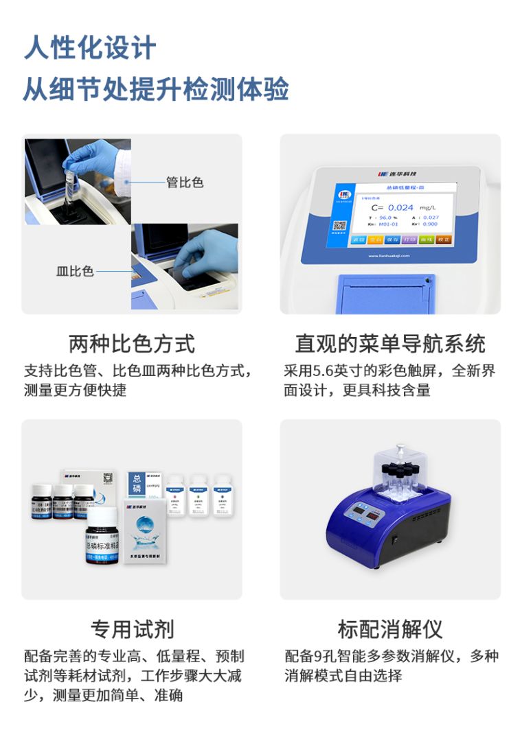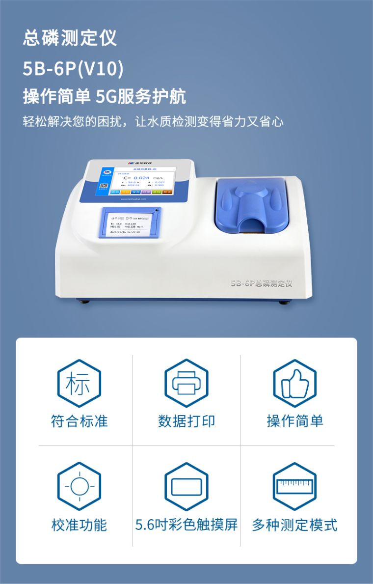 5、专业总磷测定仪:作为测定总磷的最专业的水质测定仪,浓度直读,测量结果更准确稳定;