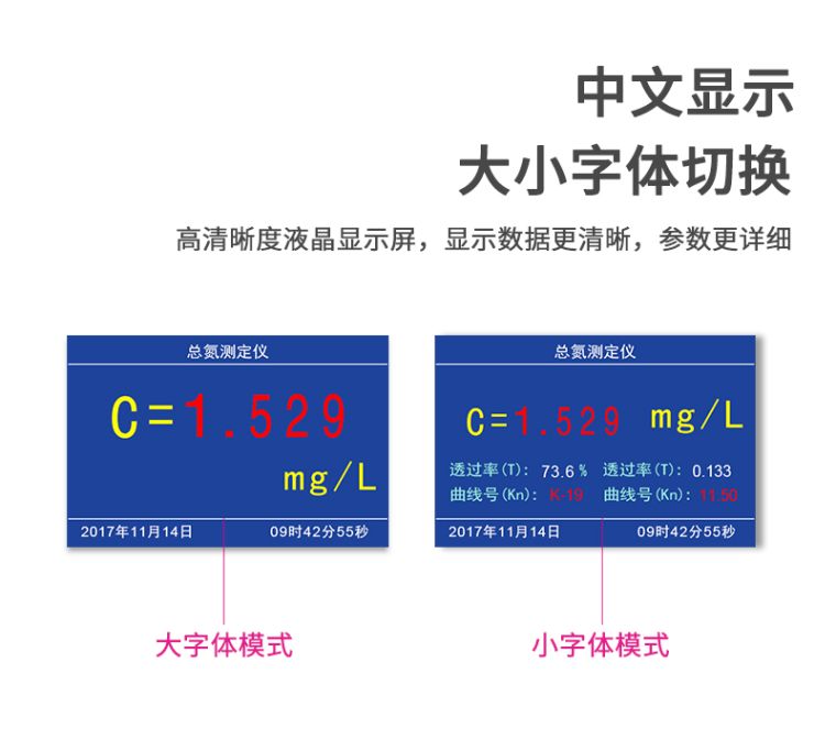 1、Φ16mm管比色,浓度直读;