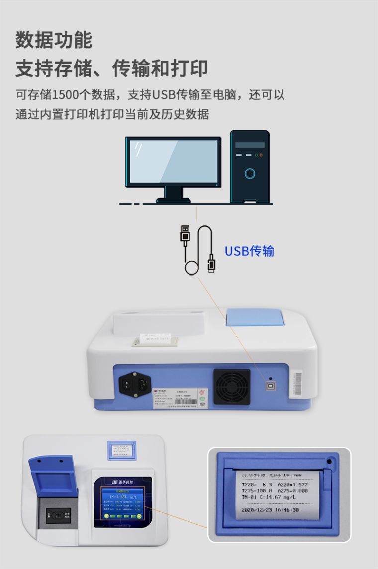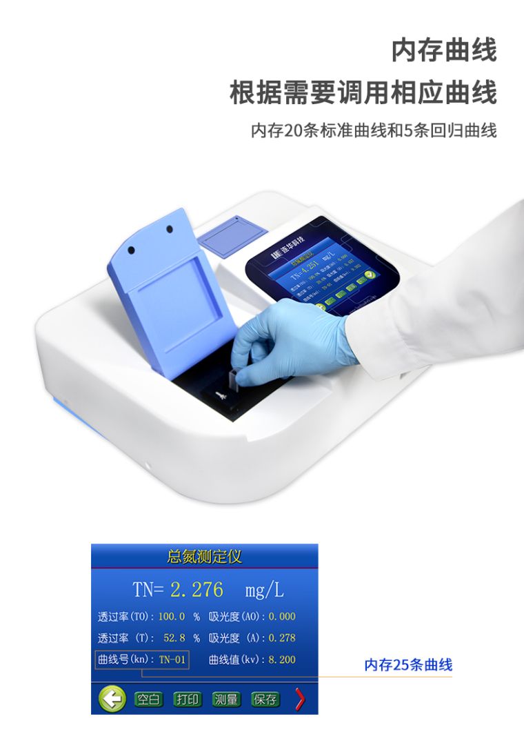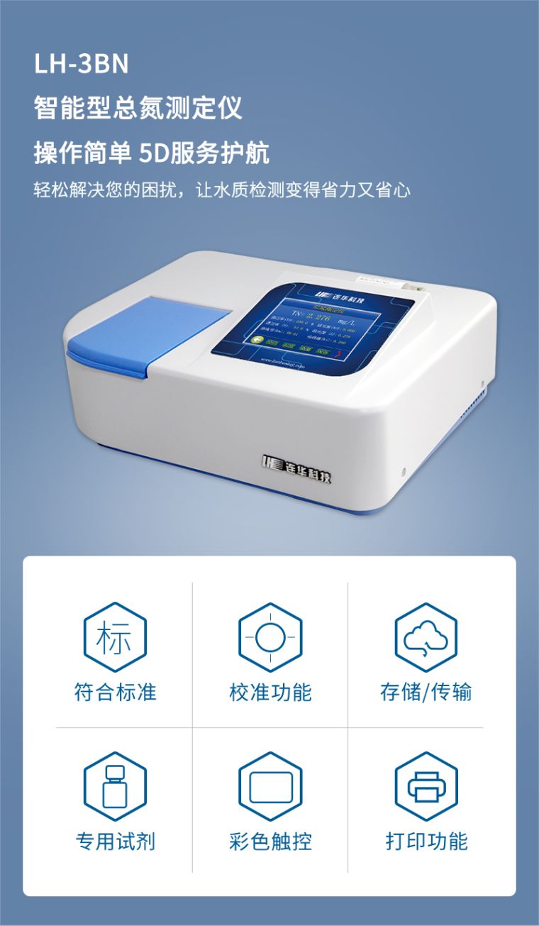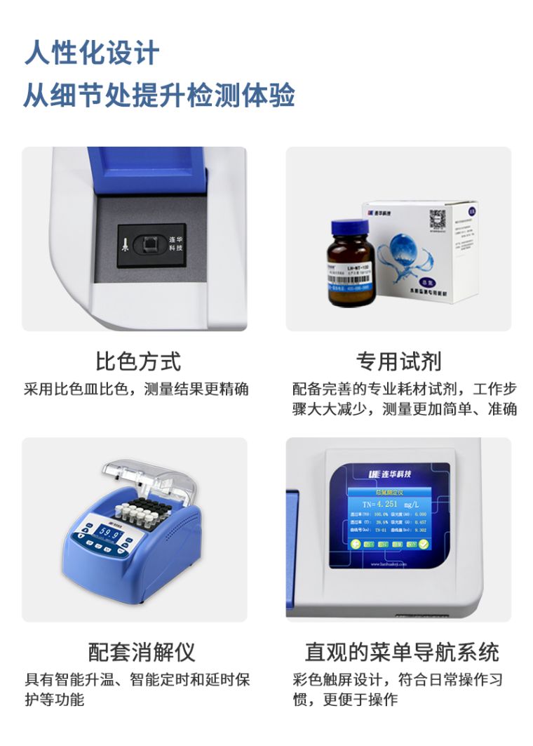 1、准确测量水中总氮含量、浓度直读;