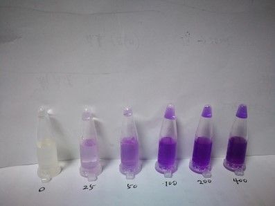 1.2:向离心管中加入10滴样品液,然后依次加入2滴二氧化硫快速检测液A和1滴二氧化硫快速检测液B,5滴二氧化硫快速检测液C,振荡摇匀反应2分钟,观察颜色变化。