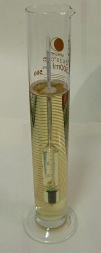 1.1:将蜂蜜轻轻混匀,再轻轻倒入250mL量筒中(取样量约300mL),将洁净干燥的蜂蜜比重计(波美计)轻 轻插入蜂蜜中央,任其自然下沉(下沉时间不少于15min)至不再下沉为止,水平观察,按蜂蜜弯月面的上缘取读数,同时用温度计测定蜂蜜温度。