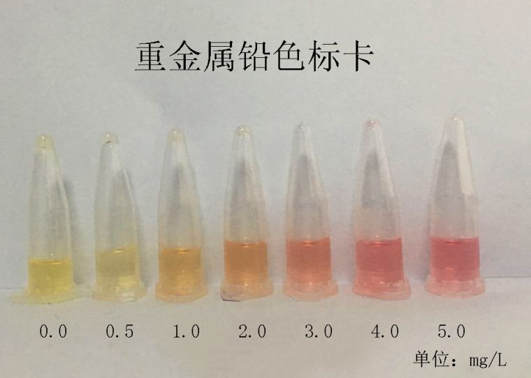 2.2:若检测管颜色为深黄色,说明不含有铅。铅的含量与比色卡进行对照。空白对照管为试剂本色或无色。(见色卡)