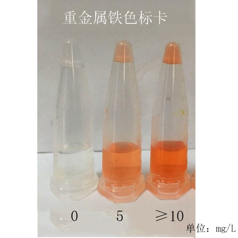 2.2:若溶液呈橙色,说明存在铁。橙色的深度与含量成正比。(见比色卡)
