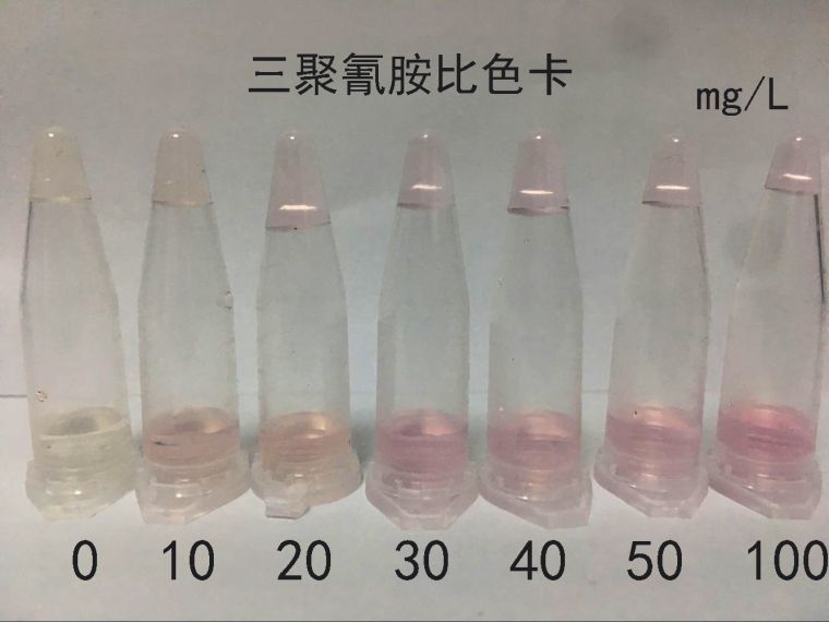 2.2:溶液呈粉红色,样品液含有三聚氰胺,浓度越高,颜色越深。(见色卡)