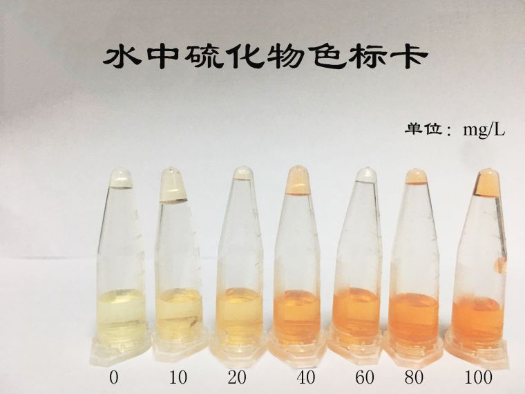 2.2:呈现深黄色和深橘色为硫化物(S2-)阳性结果,橙色深度与硫化物的浓度成正比,检出限1 mg/kg,(1 ppm)。橙色越深表明味精硫化钠含量越高。(见比色卡)
