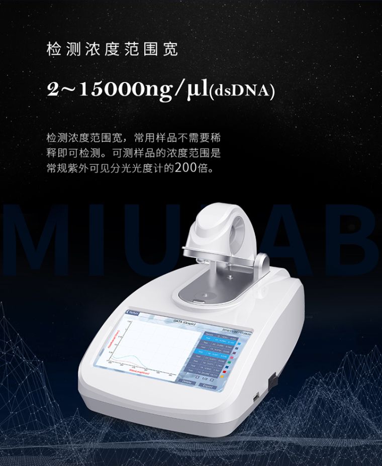 超微量紫外可见分光光度计是一款全波长超微量紫外可见分光光度计,可以用来检测核酸,微核酸阵,纯蛋白检测,标记蛋白检测,蛋白定量检测,微生物细胞培养检测以及常规的全波长扫描等。
