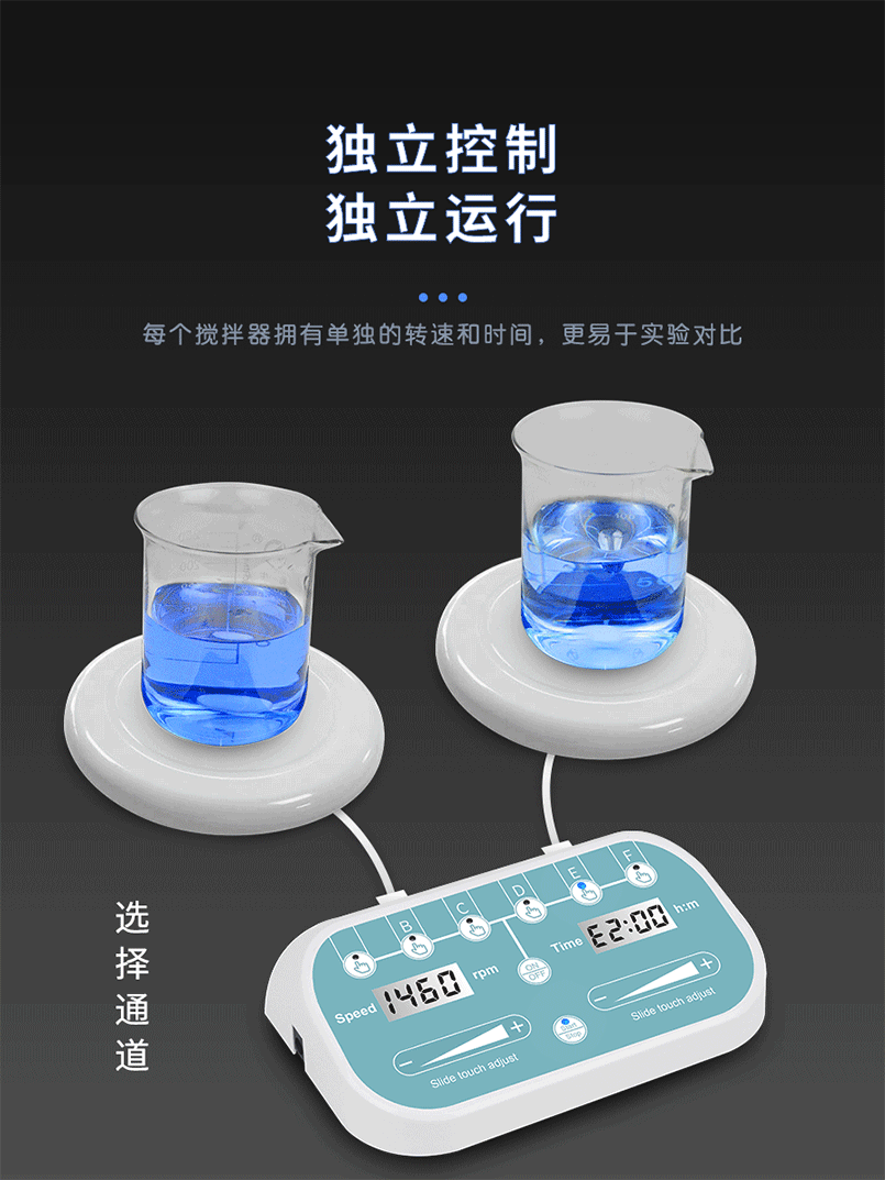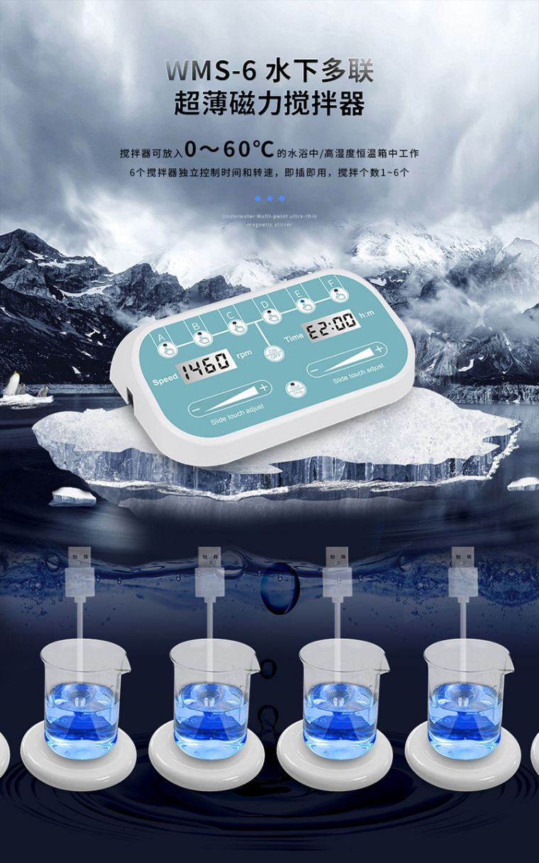 水下多联超薄磁力搅拌器能在较广的范围内对液体进行精密稳定的搅拌,防水型搅拌器可放入0~60℃的水浴中或者高湿度恒温箱中工作,特别适合小体积的样品,是石油、化工、环保、教育科研等的必备工具。
