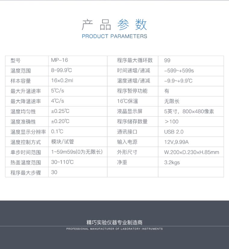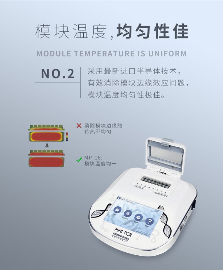 MP-16迷你PCR仪是一款超轻超薄的热循环基因扩增仪。采用5英寸TFT高清真彩全触摸液晶屏,整个程序以曲线图形实时显示,参数修改直观方便。采用**一代半导体技术,优异的温度精确度和均一性并具备极高的变温速度,确保高质量的实验结果。MP-16迷你便携可车载使用。