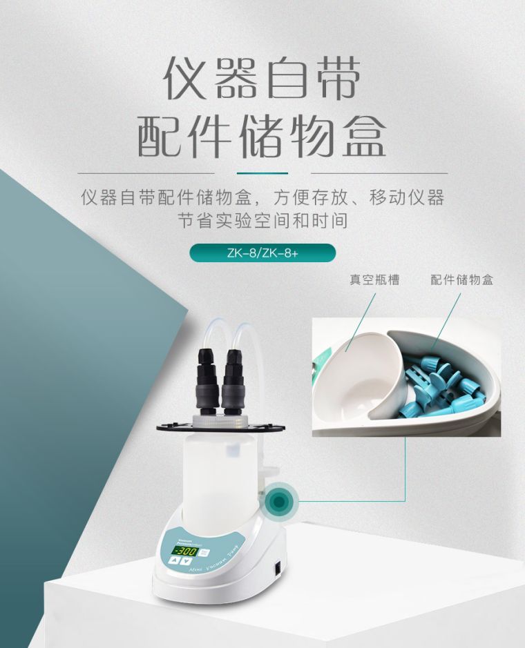 迷你真空泵系列主要用于生化培养后培养液与培养组织分离、细胞培养废液抽取以及实验室各种废液抽吸。不同流量规格可选,满足更多实验需求,是实验室无菌操作台不可缺少的**实验助手。