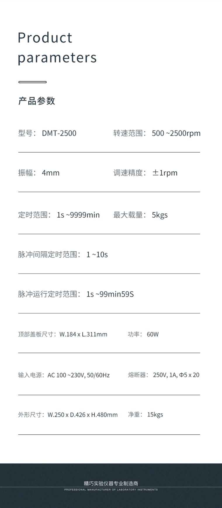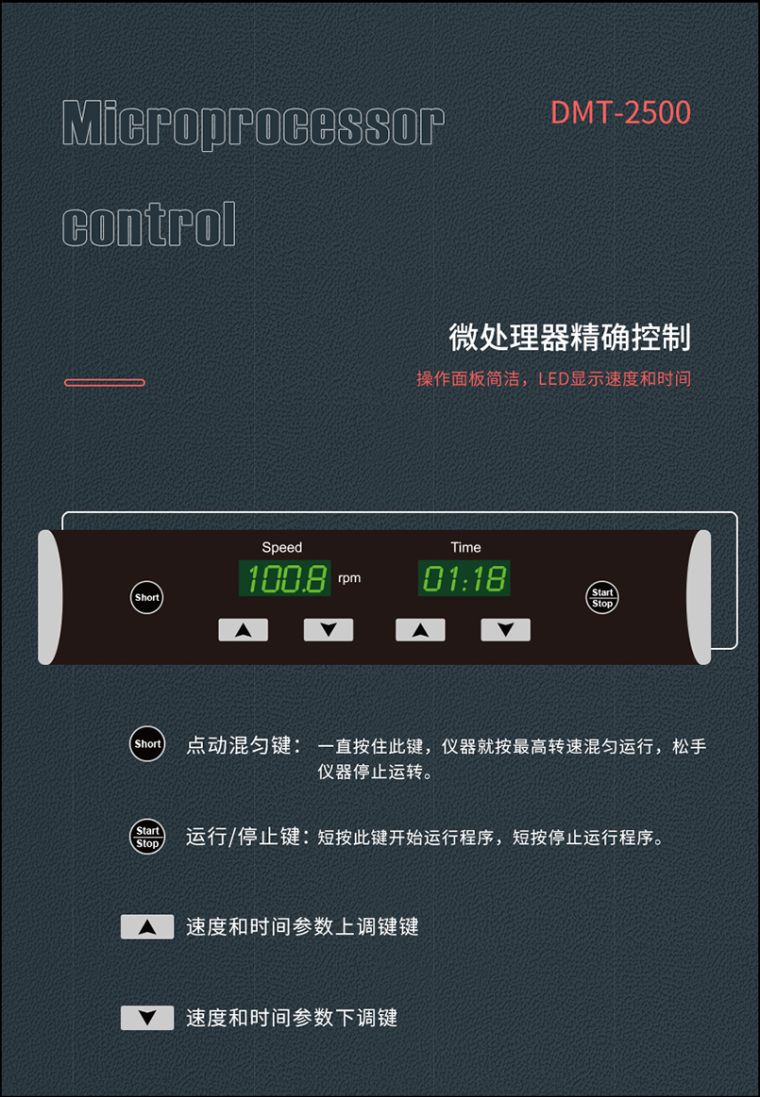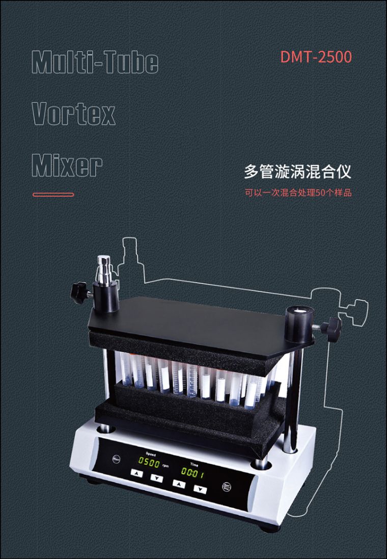 DMT-2500 多管漩涡混合仪可以一次混合处理50个样品。可选配多种配件,满足不同规格试管旋涡混合的需要。人性化的程序设计,内置定时/持续/脉冲/点动四种操作模式,让实验更加便捷高效。