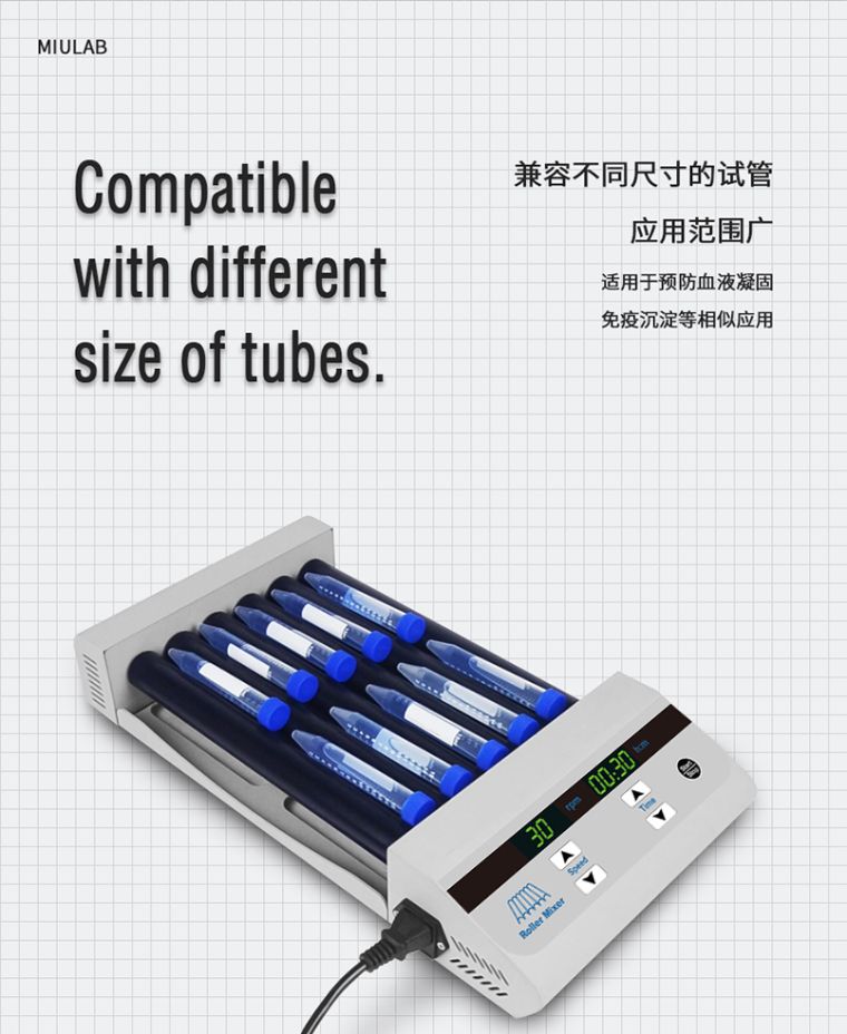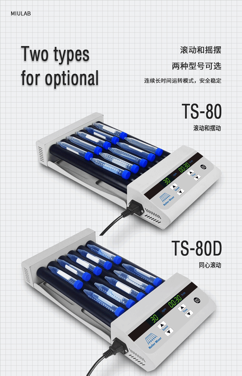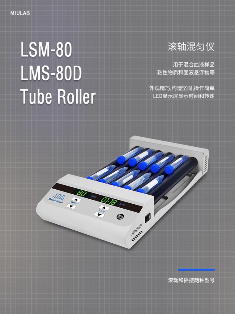 LSM-80D 滚轴混匀仪用于混合血液样品,粘性物质和固液悬浮物等,滚动和摇摆两种模式提供高效和安全的混合,适用于预防血液凝固,免疫沉淀等相似应用。