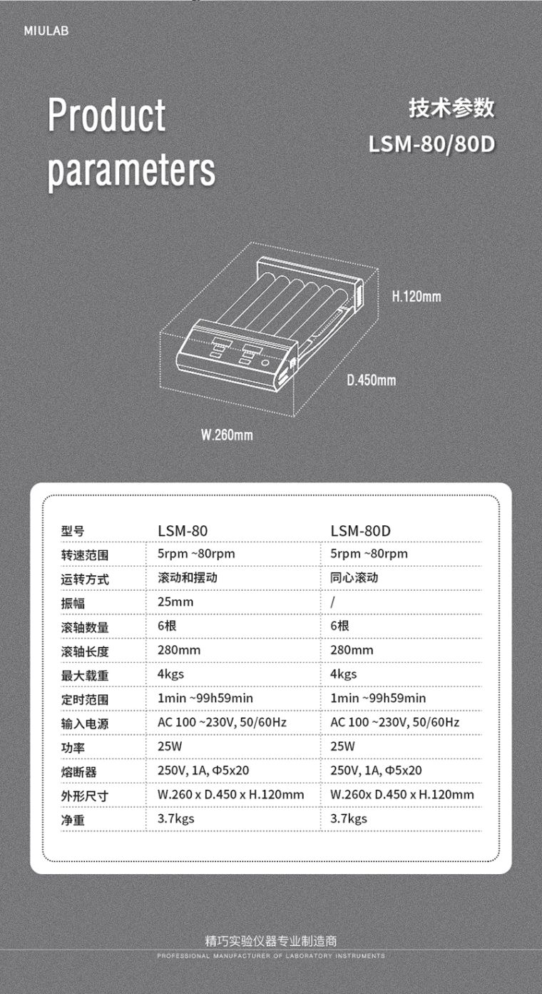 LSM-80 滚轴混匀仪用于混合血液样品,粘性物质和固液悬浮物等,滚动和摇摆两种模式提供高效和安全的混合,适用于预防血液凝固,免疫沉淀等相似应用。