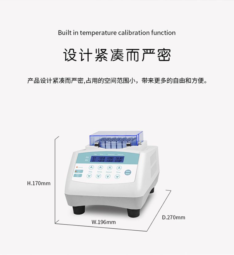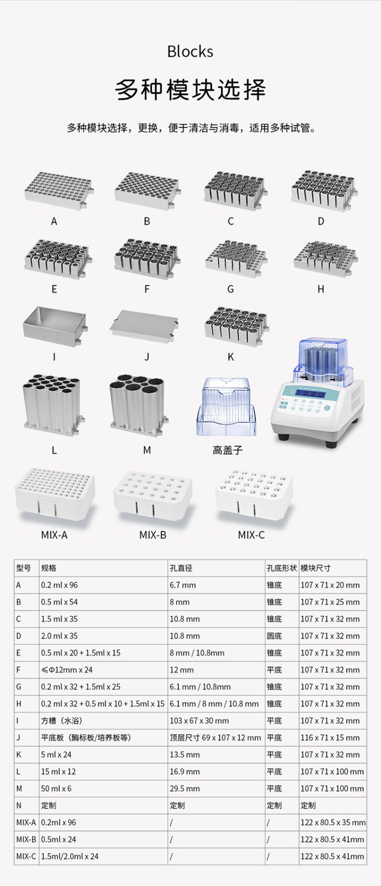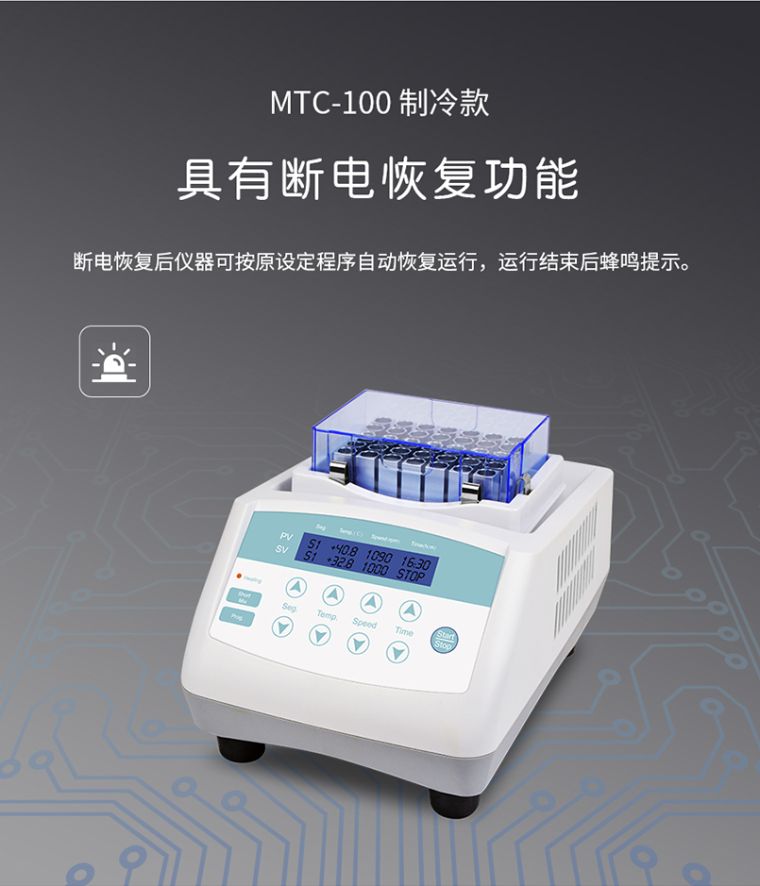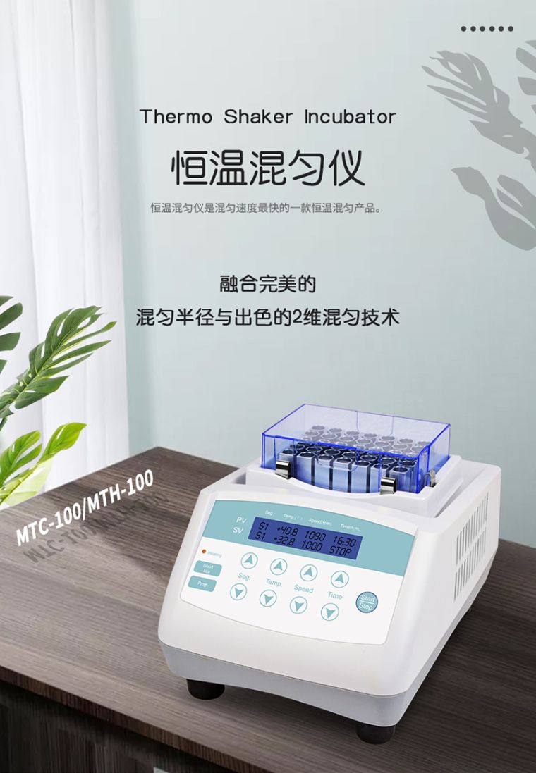 MTC-100 恒温混匀仪是混匀速度最快的一款恒温混匀产品。MTC-100整合混匀、振荡、孵育加热、制冷四种(MTH-100整合混匀、振荡、孵育加热三种)功能,融入智能操作的设计理念,它不但能混匀各种微量管、PCR板、深孔板和微孔板等实验室常用耗材,还具备对各种模块进行加热孵育、催化的功能。满足不同用户的需求。