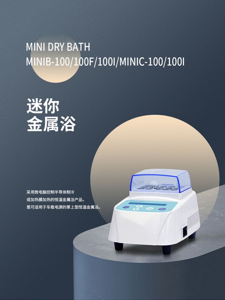 MINIC-100 迷你金属浴是采用微电脑控制半导体制冷或加热膜加热的恒温金属浴产品,是可适用于车载电源的掌上型恒温金属浴。体积特小,重量轻,移动方便,适合各种场合使用。100I系列产品还拥有PCR热盖技术,增加了防蒸发功能。100F产品采用风扇冷却,降温快。