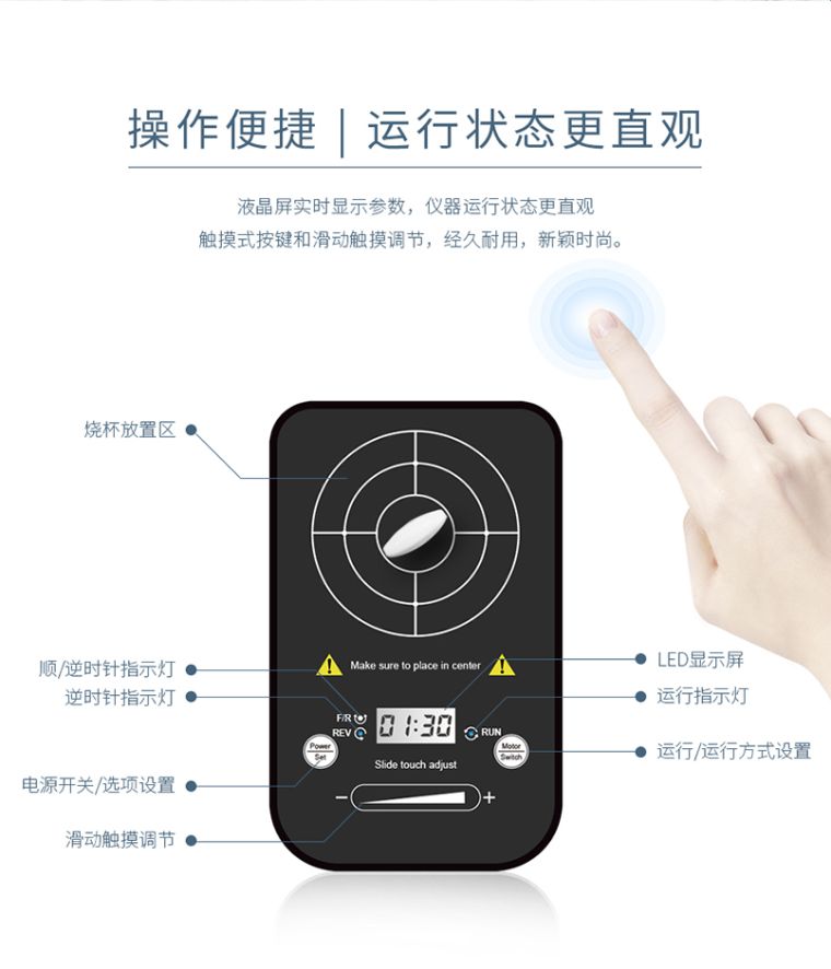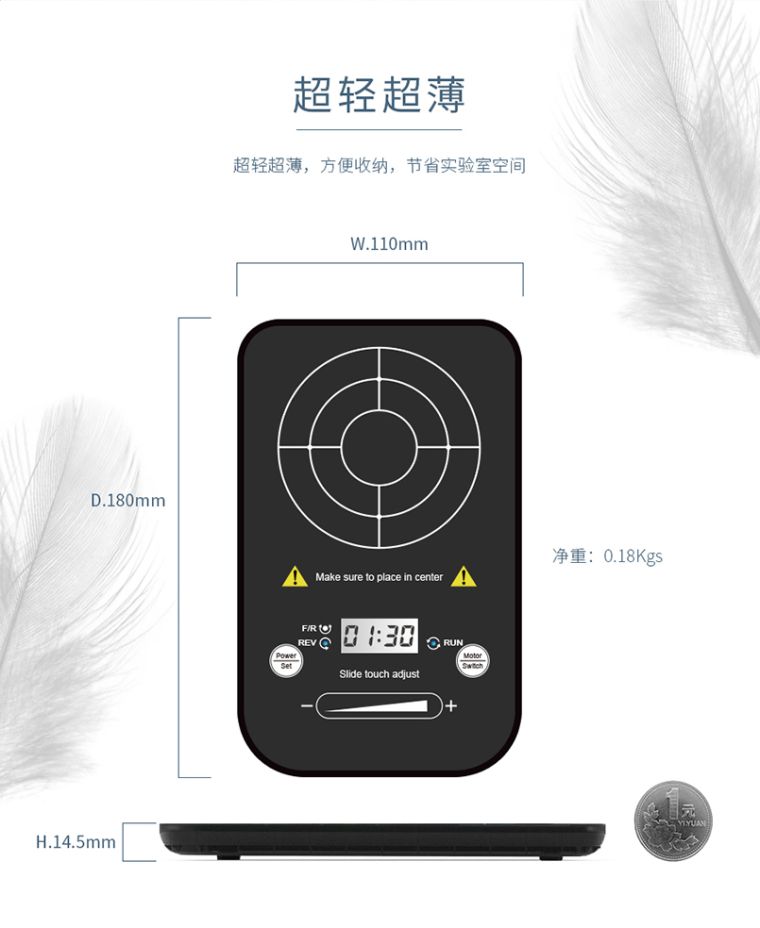 超薄磁力搅拌器能在较广的范围内对液体进行精密稳定的搅拌,特别适合小体积的样品,是石油、化工、环保、教育科研等的必备工具。