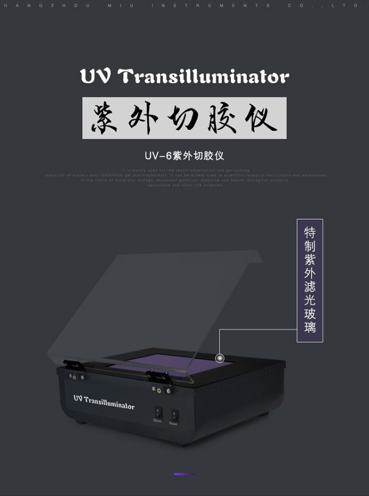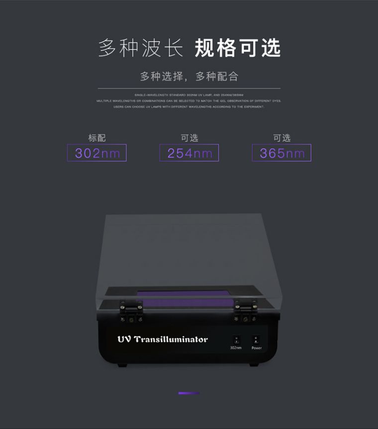 主要用于核酸(DNA/RNA)凝胶电泳的结果观测与切胶操作。可广泛应用于涉及分子生物学、分子遗传学、医药卫生、生物制品、农业等生命科学研究领域的科研院校与企业单位。