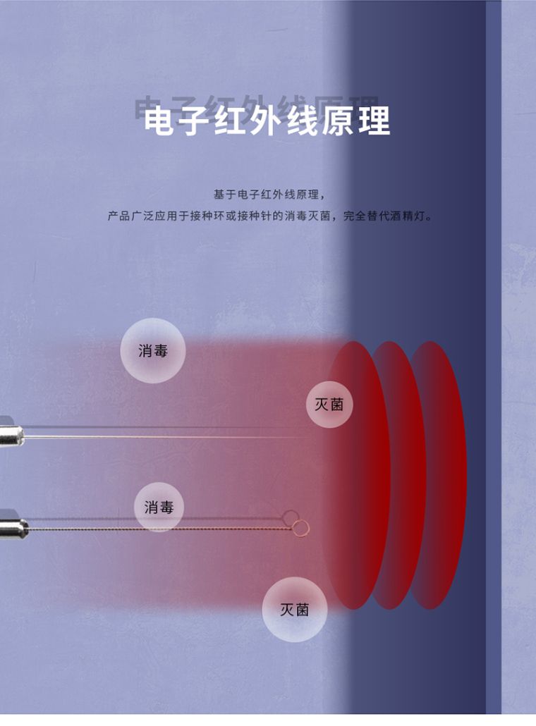 红外持种环灭菌器采用红外线热能灭菌,因其使用方便、操作简单、无明火、不怕风、替代酒精灯,使用安全,可广泛应用于生物安全柜、净化工作台、抽风机旁、流动车上等环境中,进行微生物实验。