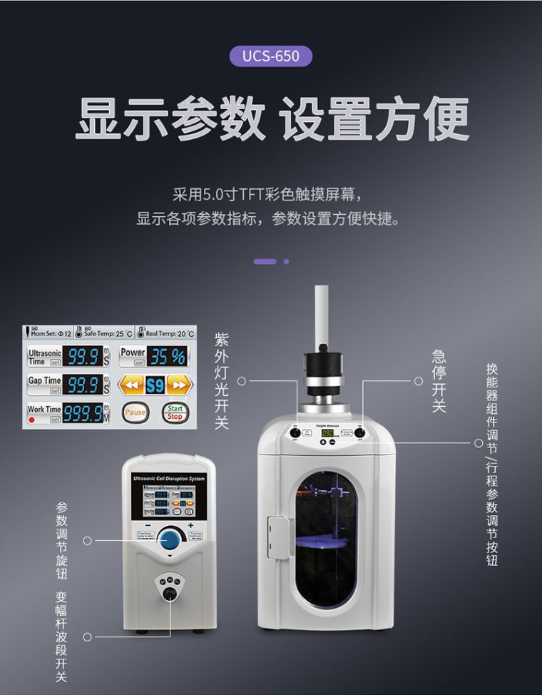 超声波细胞破碎仪,是一种利用超声波在液体中产生空化效应的多功能、多用途仪器。它能用于多种动植物、病毒、细胞、细菌及组织的破碎,同时可用来乳化、分立、匀化、提取、消泡、清洗、纳米材料的植被、分散及加速化学反应等。仪器被广泛应用于生物学、微生物学、物理学、动物学、农学、制药等领域的教学、科研、生产。