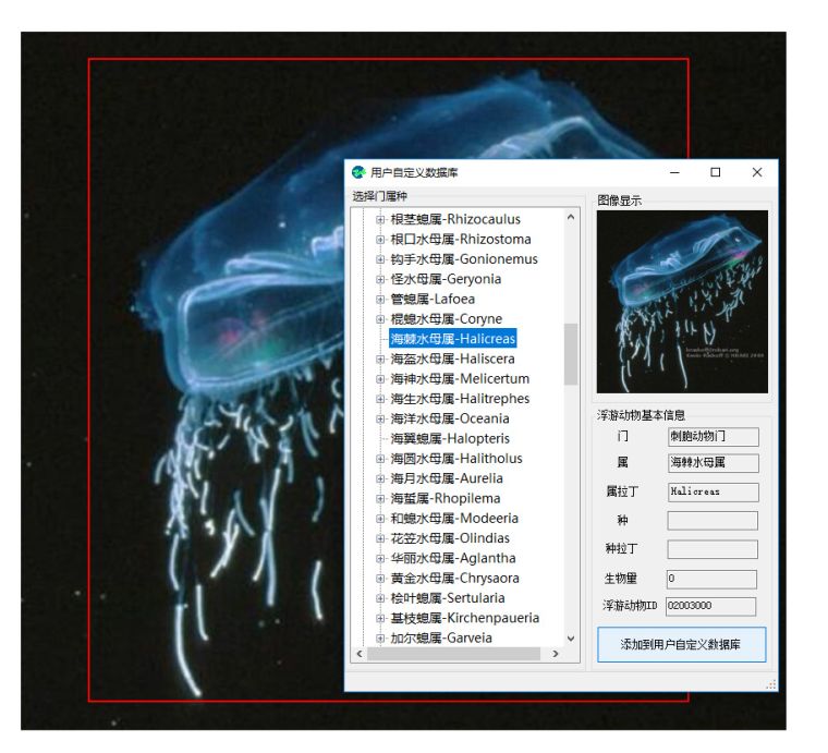 用户可自行添加浮游动物图片到用户自定义数据库,创建本地数据库。