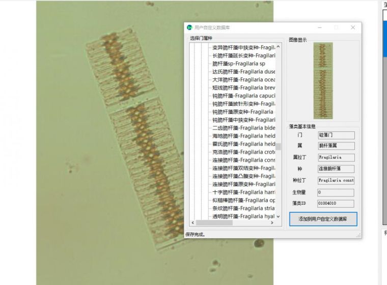 系统中包含常见藻列表以及本地自定义数据库