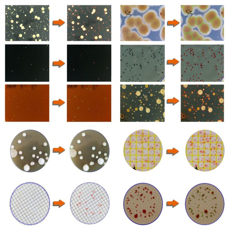 黏连菌统计:适用于背景颜色单一、菌落颜色不一致且边缘模糊的菌落快速统计。