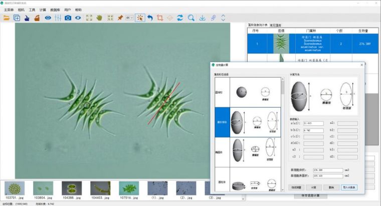 可测量藻群体面积、浮游生物个体面积,藻类直径,藻丝、鞭毛长度以及分枝角度