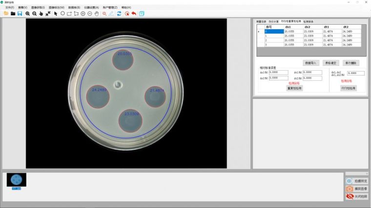 自动测量:适合边缘清晰、标准圆形抑菌圈轮廓的精确边缘检测