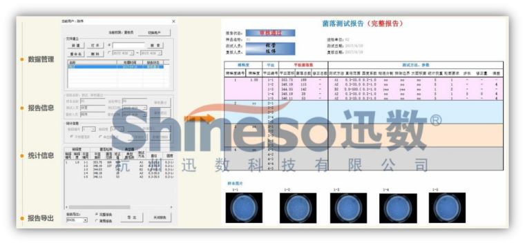 2)全部操作流程,包括:菌落图片、培养皿尺寸、样本稀释度、统计工具、所用参数、测试所得的菌落总数、自检修正后的菌落总数等,由计算机自动记录在数据库中,操作员无法进行改动,为后续审计提供全部真实数据。