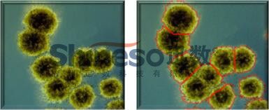 菌落粘连分割:自动分割相互粘连的菌落,链状菌落由用户选择分割或不分割