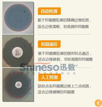迅数提供三种算法:自动检测、拟圆逼近、三点定圆,可适应不同类型抑菌圈的快速测量。
