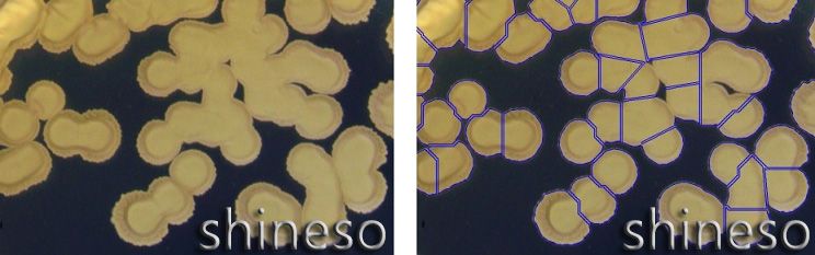 菌落粘连分割:自动分割相互粘连的菌落,链状菌落由用户选择分割或不分割