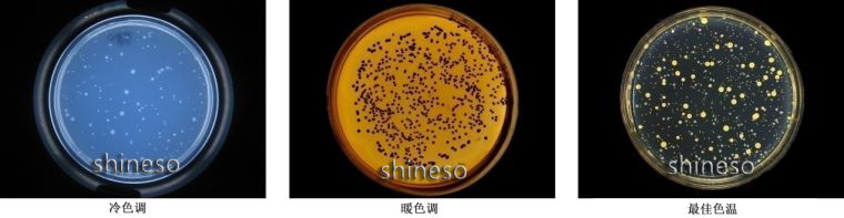长寿命、低功耗、环保型三色LED混合光,通过暖色光和冷色光的配比,控制色温范围为3500K-8500k,拍摄出最真实的菌落色泽。