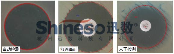 人工检测:鼠标点击抑菌圈边缘上三点成圆,适合边缘模糊的抑菌圈