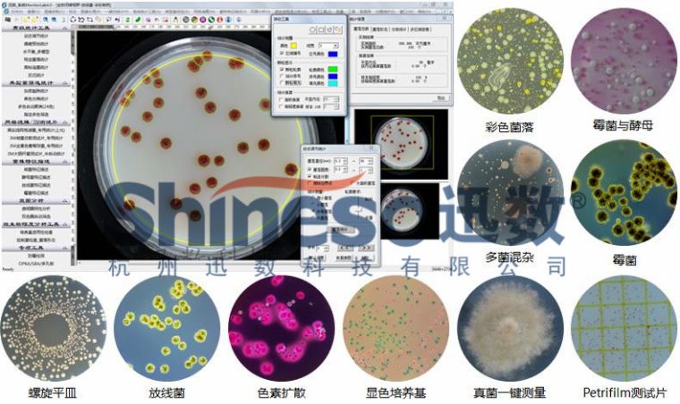 菌落分析软件、自动抑菌圈测量软件、抗生素效价测定软件、舒巴坦敏感β-内酰胺酶检验软件、显微分析软件