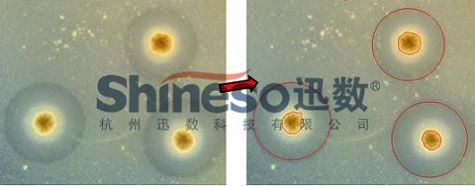 管碟扩散法要求抑菌圈圆而边缘清晰,但实验中仍会出现抑菌圈边缘不清晰、破裂等情况,迅数Szone 抑菌圈多模式测量技术,运用三种不同的高速算法,精确提取构成抑菌圈边缘的像素点,从而完成高精测量。