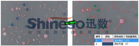 随着显色培养基的使用日益广泛,在科研、检测领域又提出了新的要求:对不同颜色的菌落一次性分类计数。传统的多色菌落自动分类一般采用彩色立方体的方法,但效果往往不好。迅数科技**研究的“基于RGB约束的水平集活动轮廓模型多色聚类”,将RGB模型加入CV水平集活动轮廓模型的约束条件中,得到了较理想的图像分割效果。