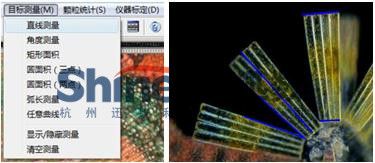 测量功能:对颗粒直径、长度、弧度、角度、任意曲线、面积等的在线测量