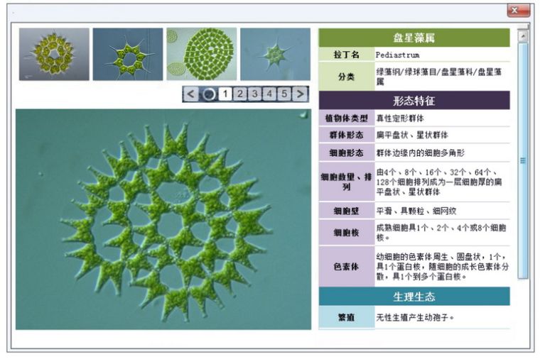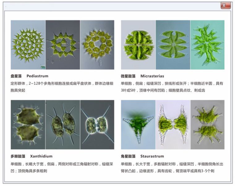 每个具体藻种,精选能反应其形态特点的一组图片,避免用户陷入大量冗余图像信息中。