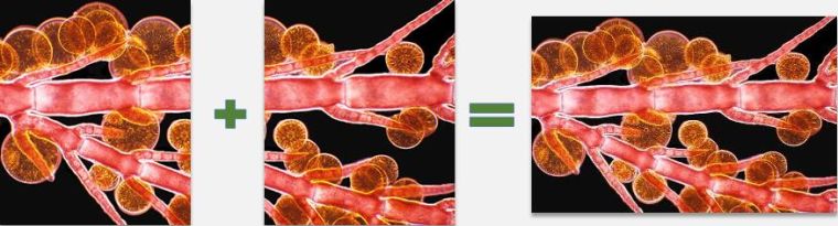 通过对不同视野图像的水平或垂直拼接,完整展现高倍分辨率的超视野藻细胞图片。
