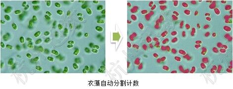 为解决新能源、新食品原料微藻的研究和生产工艺控制,“迅数”开发了“卵形细胞辅助计数”和“复杂细胞辅助计数”两种图像分割算法,可以快速实现微藻细胞浓度测定。