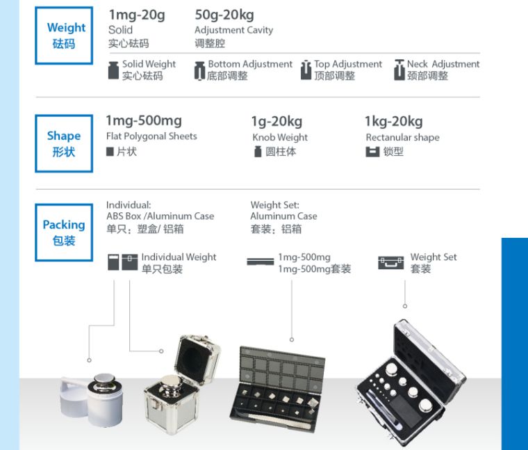 砝码组成:1mg,2mg,2mg,5mg,10mg,20mg,20mg,50mg,100mg,200mg,200mg,500mg