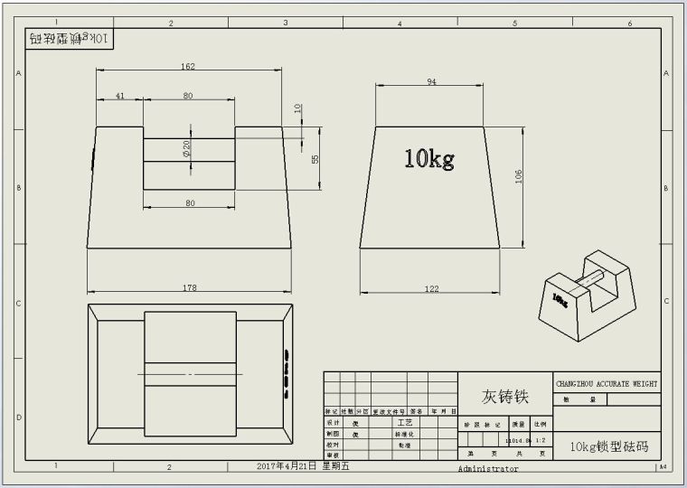 砝码尺寸(L*W*H)mm:178*122*106