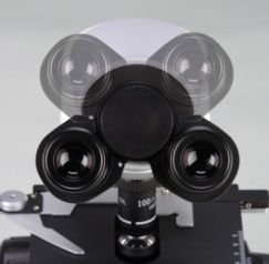 | 蝴蝶型三目镜筒,360°自由旋转,30°倾斜,瞳距调节48~75mm 分光比80∶20(同步观察) | |