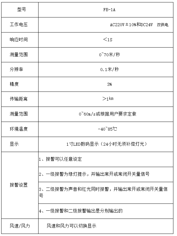 FB-1A风速报警仪由风速传感器、主机、传输电缆等附属装置构成。