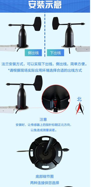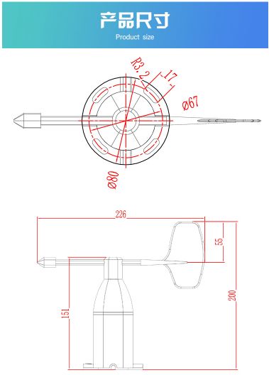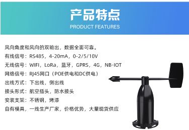 传感器壳体采用铝制材料,具用高耐候性、高强度、防腐蚀和防水性;内部电路均经过防护处理,整个传感器具有很好的耐恶劣环境的适应性。电缆接插件为**插头,具有良好的防腐、防侵蚀性能,能够保证仪器长期使用,同时配合内部进口轴承系统,确保了风向采集的精确性。