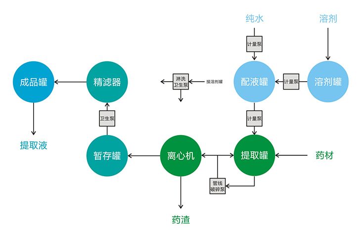 6、配液、提取、分离、精滤一体化工艺流程设计;