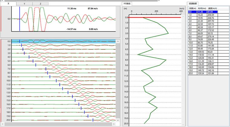 | 数据波形曲线 | 支持数据、波速、HV曲线同一屏显示功能 |