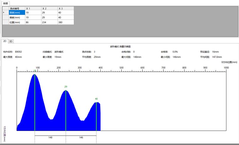 ◆厚度测量、网格扫描、波形扫描、剖面扫描四种都完全实现在测量过程中可以任意前后翻页、查看数据和图形以及随时后退删除操作有误测试数据,便于现场测试使用;