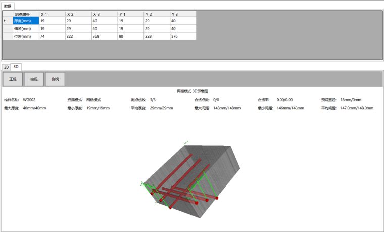 ◆随意切换后数据及钢筋分布图会自动延续之前信息进行测试,从而提高现场测试的灵活性。
